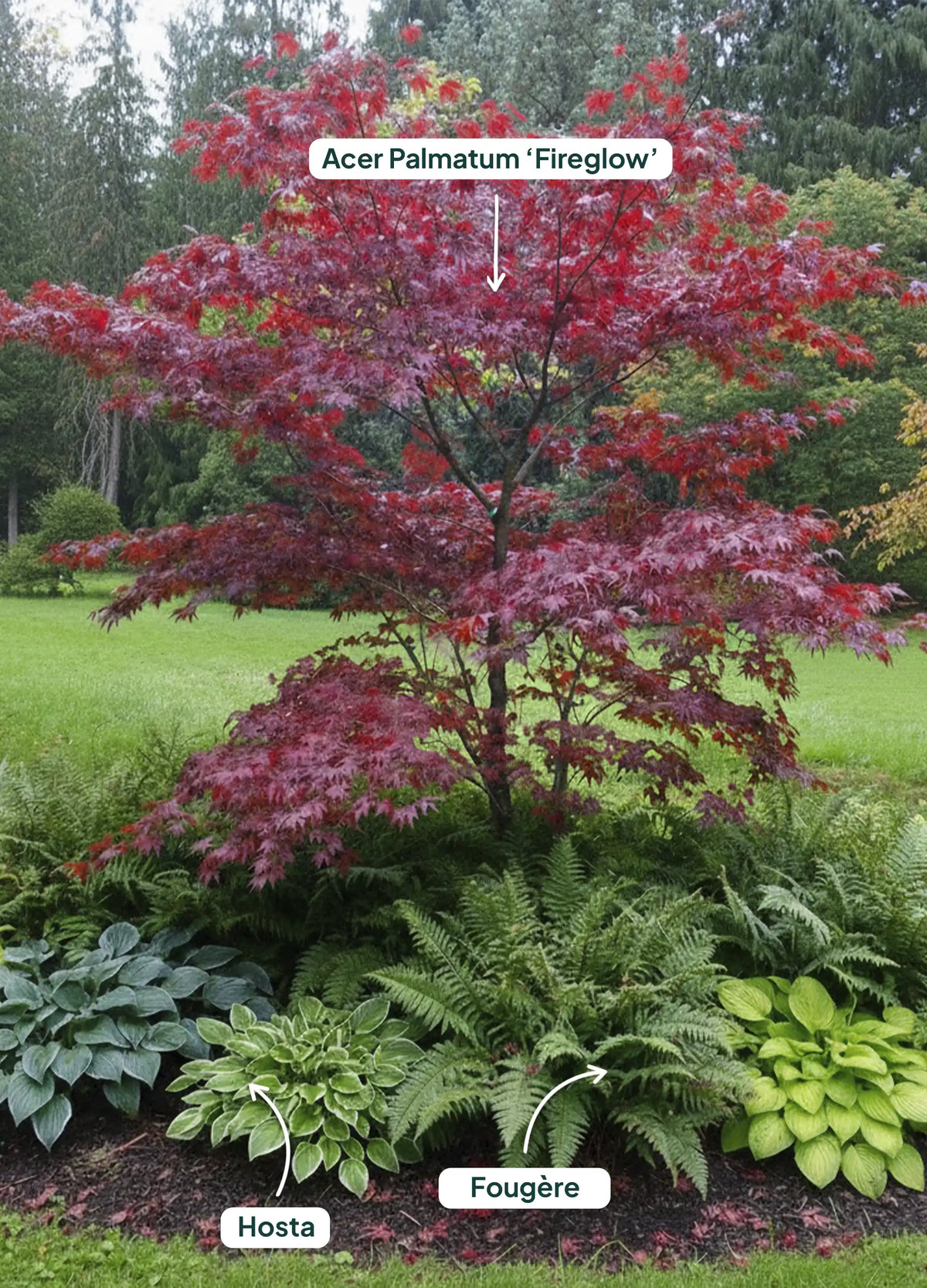 Quelles associations de plantes avec un Acer palmatum ‘Fireglow’ ?