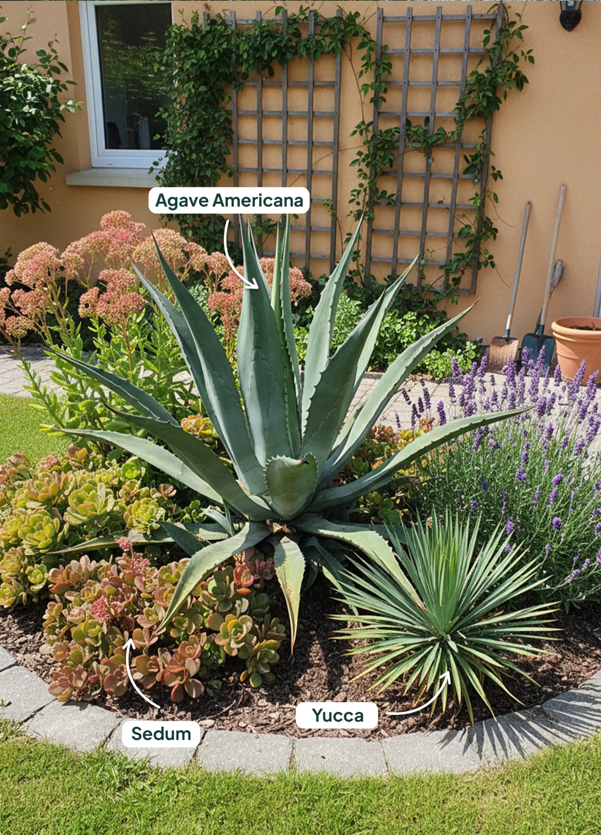 Pour compléter l'Agave americana avec charme et simplicité, optez pour des couvre-sols qui rappellent les paysages arides :