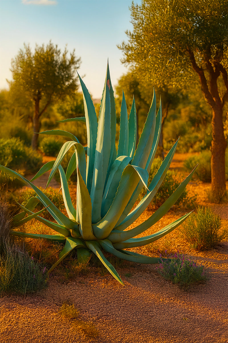 L’Agave, également connu sous le nom de Agave du Mexique ou Century Plant, est une plante succulente emblématique des déserts d'Amérique du Nord et d'Amérique centrale. Son origine remonte à des milliers d'années, étant utilisée par les civilisations précolombiennes pour ses nombreuses applications, allant de la production de fibres pour le textile à la fabrication de boissons traditionnelles comme le pulque.