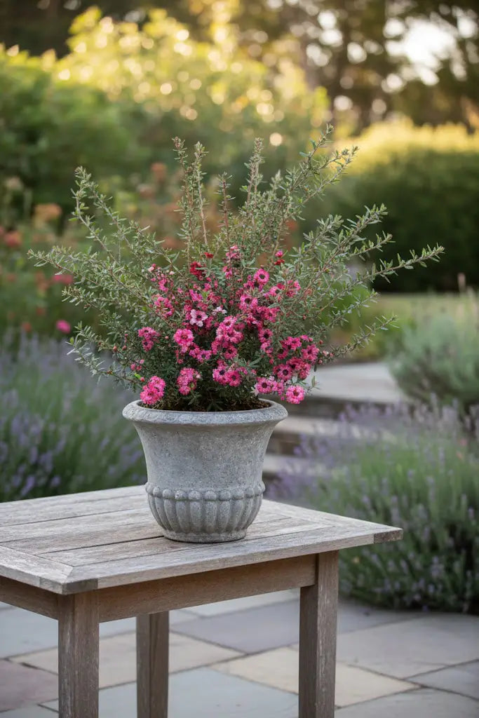 - Choisissez un emplacement idéal : Placez votre Leptospermum dans un endroit baigné de lumière indirecte. Une exposition au soleil direct peut affecter la couleur des fleurs.