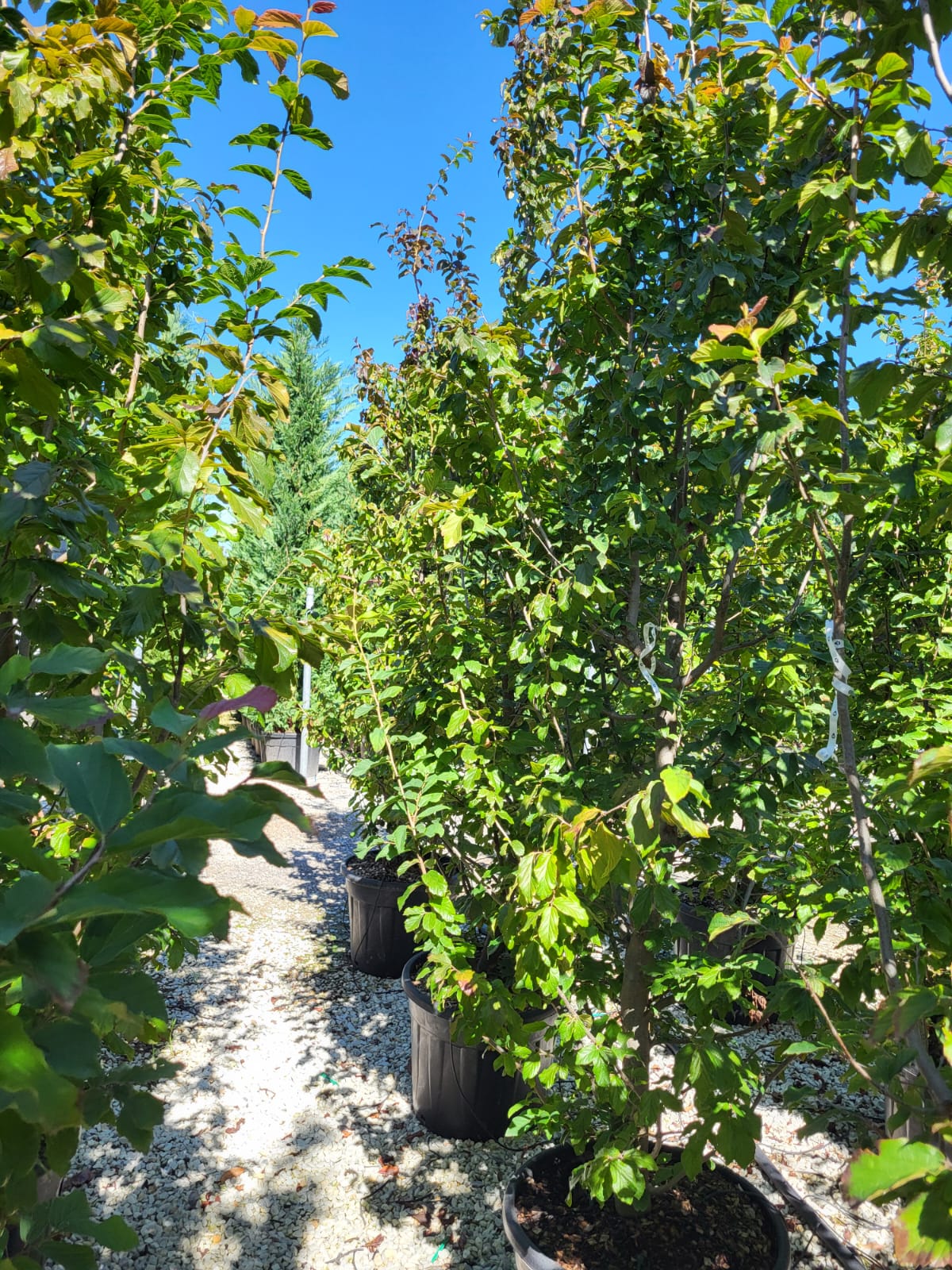 Le Parrotia persica ‘Bella’, ou arbre de fer, appartient à la famille des Hamamelidacées. Originaire d’Iran et du Caucase, il est apprécié pour sa silhouette élégante, son feuillage dense, et ses teintes automnales spectaculaires. Son nom évoque la solidité remarquable de son bois, particulièrement dur et compact. Cet arbre ornemental est idéal pour structurer un jardin ou mettre en valeur un espace paysager.