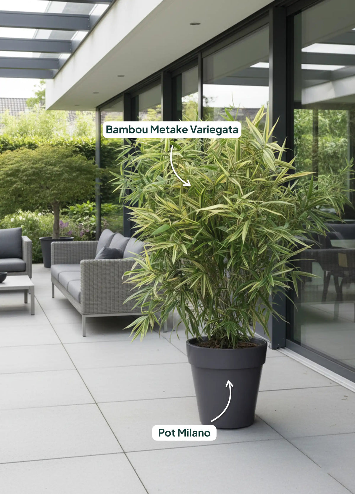 Le Bambou Metake Variegata s’adapte bien à la culture en pot, parfaite pour les balcons ou terrasses. Rempotez régulièrement, tous les 2 à 3 ans, de préférence au printemps. Optez pour un pot spacieux avec une bonne capacité de drainage. Utilisez un mélange de terreau universel et de terre de jardin pour nourrir la plante. Arrosez modérément, en maintenant une humidité constante sans excès.