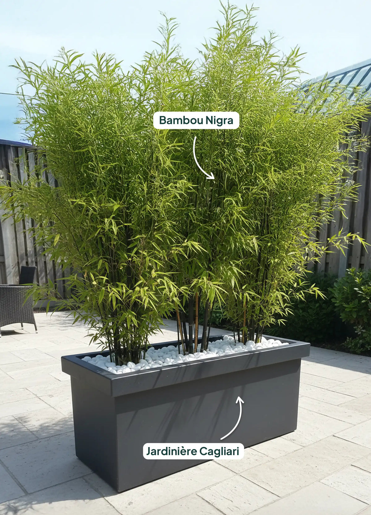 Le Bambou Nigra est idéalement planté au printemps ou à l'automne pour profiter d'un sol encore humide et d'une température modérée. Ces périodes favorisent l’enracinement avant l’arrivée des chaleurs estivales ou des froids hivernaux. Assurez-vous de le placer dans un sol bien drainé et un emplacement mi-ombragé à ensoleillé pour de meilleures conditions de croissance.