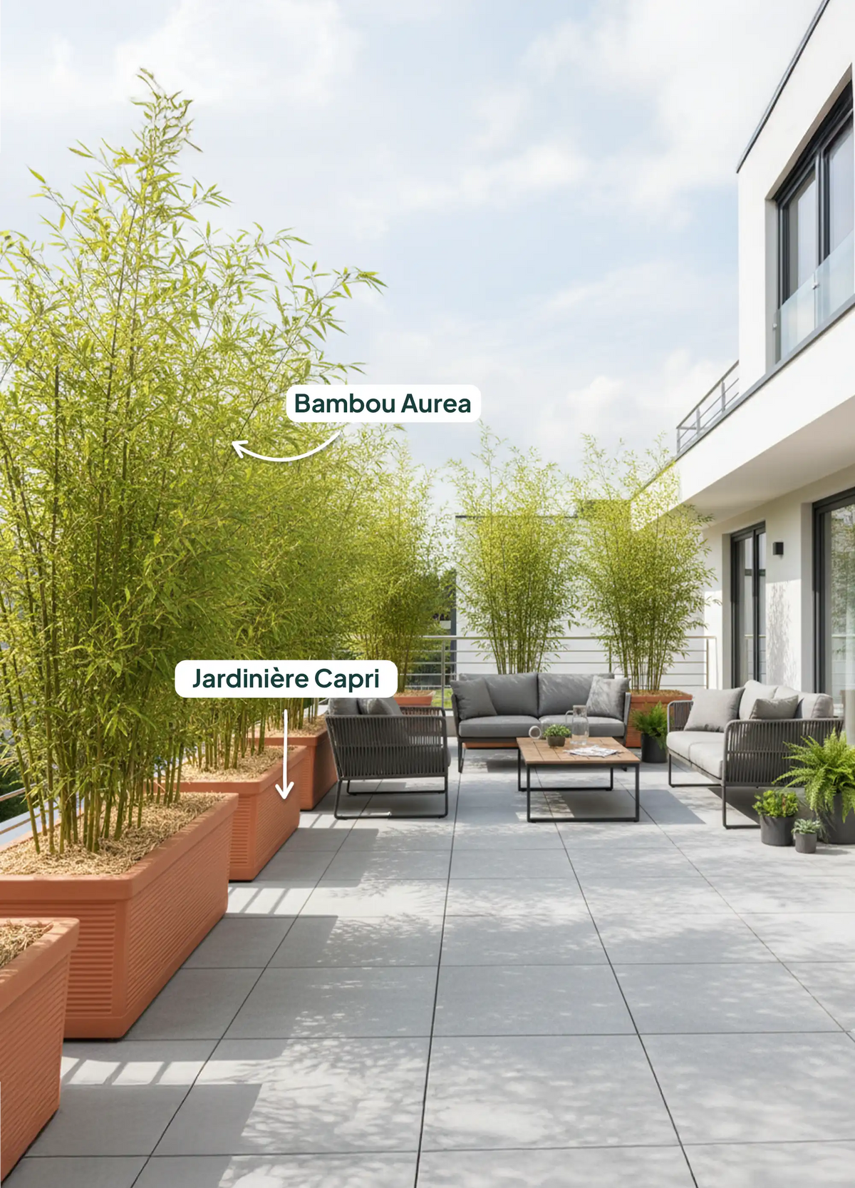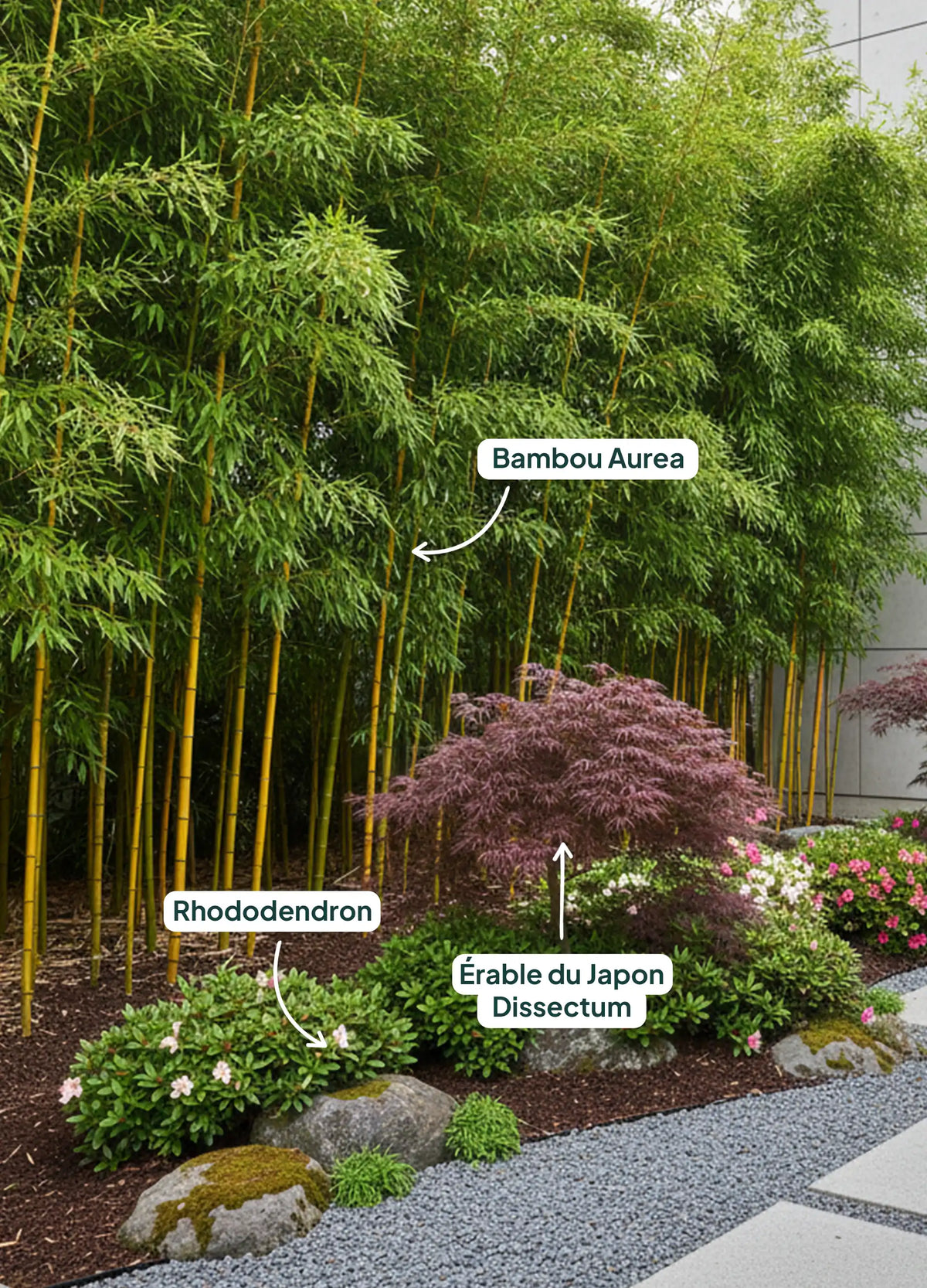 Associez-le avec des arbustes pour créer des jardins exotiques :Le Bambou doré est parfait pour apporter une touche exotique et lumineuse à vos espaces. Associez-le à des arbustes complémentaires pour enrichir la texture et les couleurs de votre jardin :