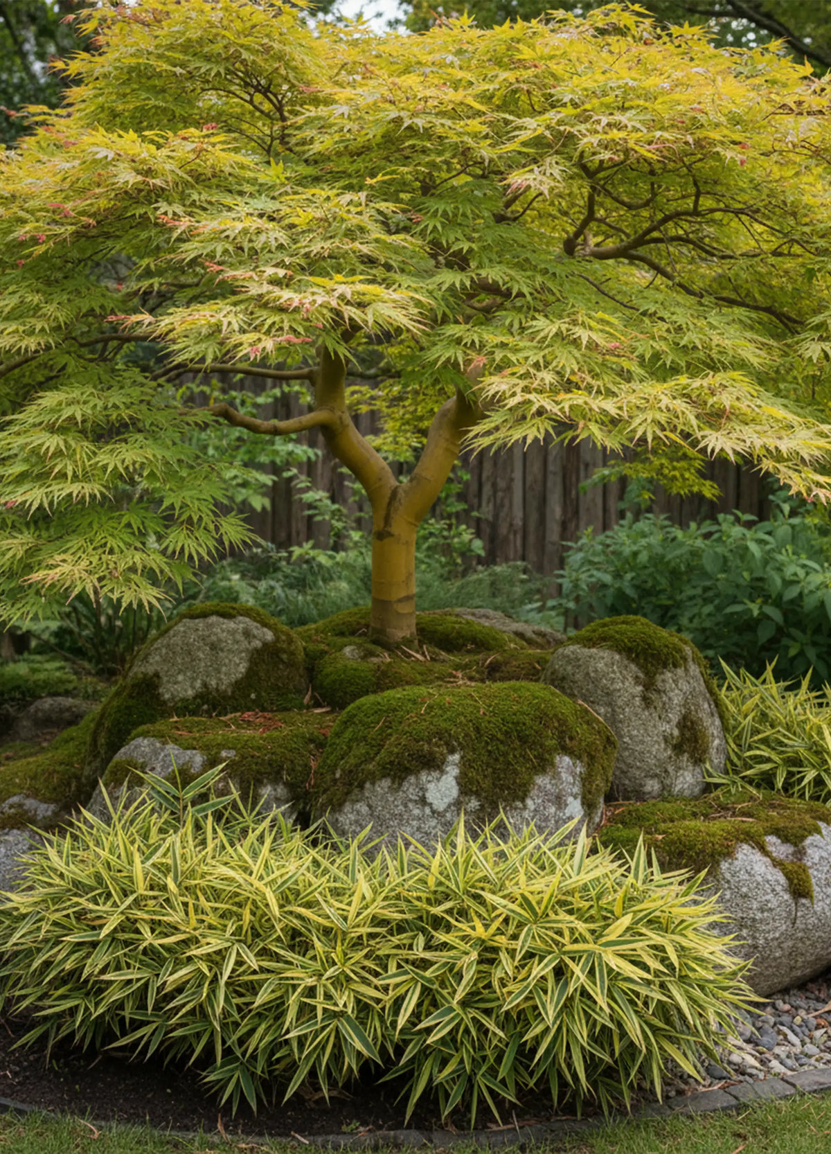 Les autres plantes à associer au Bambou nain à bandes dorées