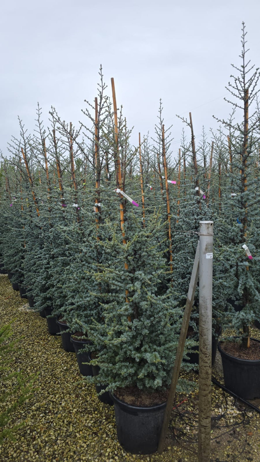 Le cèdre bleu, variété ornementale du cèdre de l’Atlas, est un conifère majestueux de la famille des Pinaceae. Apprécié pour son feuillage argenté, il se distingue par son port conique, sa résistance naturelle et sa croissance régulière. Il peut atteindre 15 à 25 mètres de hauteur à maturité. Son feuillage bleuté offre un contraste spectaculaire dans les jardins paysagers. Il tolère bien les conditions climatiques variées et s’adapte aux grands espaces comme aux plantations isolées. Peu exigeant, il nécessite peu d’entretien, si ce n’est une bonne exposition et un sol bien drainé.