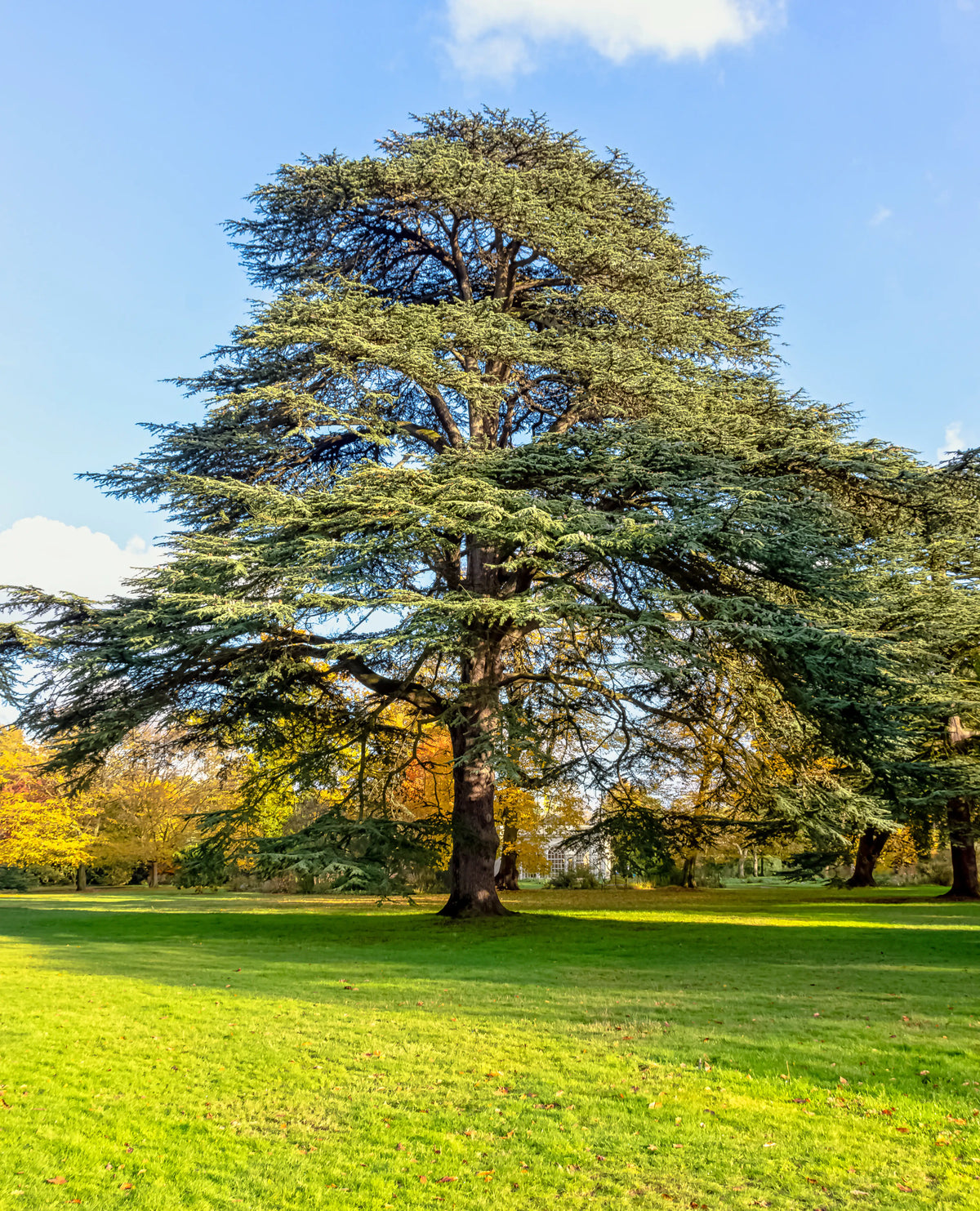 Le feuillage du cèdre du Liban est composé d’aiguilles persistantes, regroupées en touffes denses sur des rameaux courts. Leur couleur varie du vert bleuté au vert sombre, créant un effet visuel très graphique. Ces aiguilles, rigides et pointues, mesurent entre 1 et 3 cm de long et permettent au cèdre de résister à la sécheresse et aux conditions extrêmes.