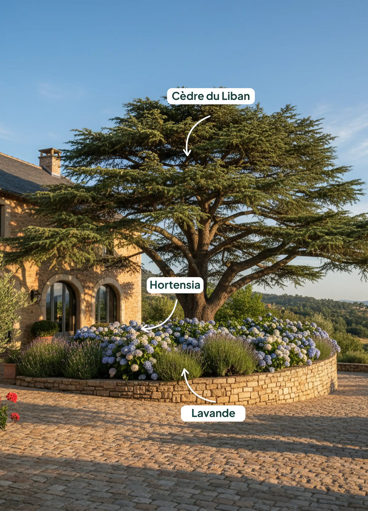 - Arbres compagnons : érables, hêtres, chênes pour un effet boisé structuré.