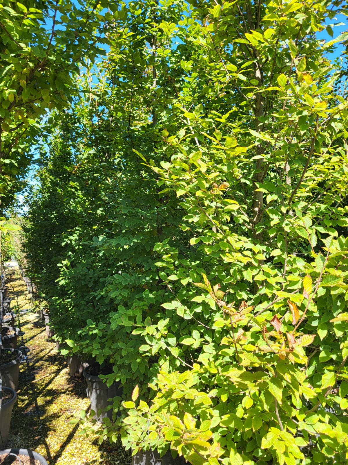 Le charme commun, Carpinus betulus, appartient à la famille des Bétulacées. Cet arbre caduc, apprécié pour ses qualités ornementales, est souvent utilisé en haies structurées ou en isolé. Il se distingue par un feuillage marcescent, qui reste accroché en hiver, et une écorce gris clair striée verticalement. Rustique, il s’adapte à différents types de sols et s'intègre aussi bien aux jardins urbains qu'aux aménagements champêtres.