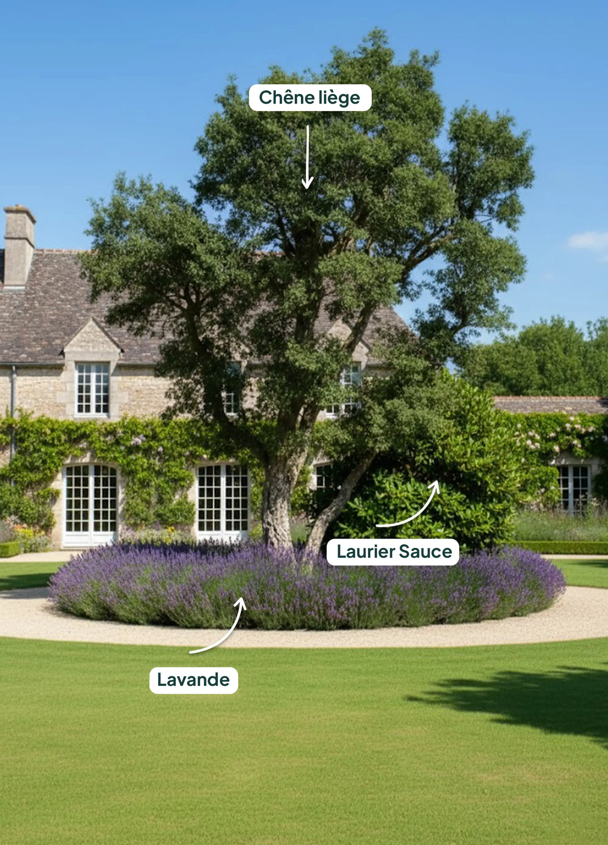 - Arbres compagnons : Olivier, pin parasol pour une ambiance typique.