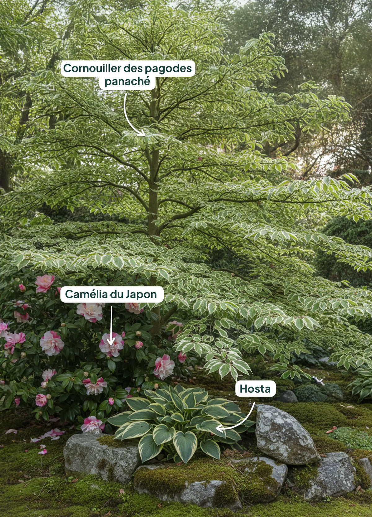 Les autres plantes à associer au Cornouiller des Pagodes panaché (Cornus controversa 'Variegata')