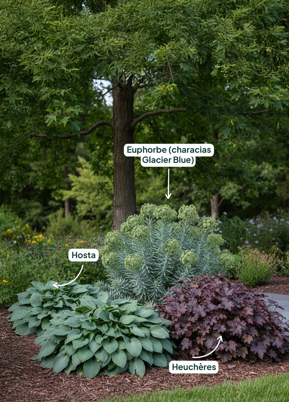 Pour garantir une floraison variée autour de votre euphorbe, optez pour des vivaces aux périodes de floraison alternées :