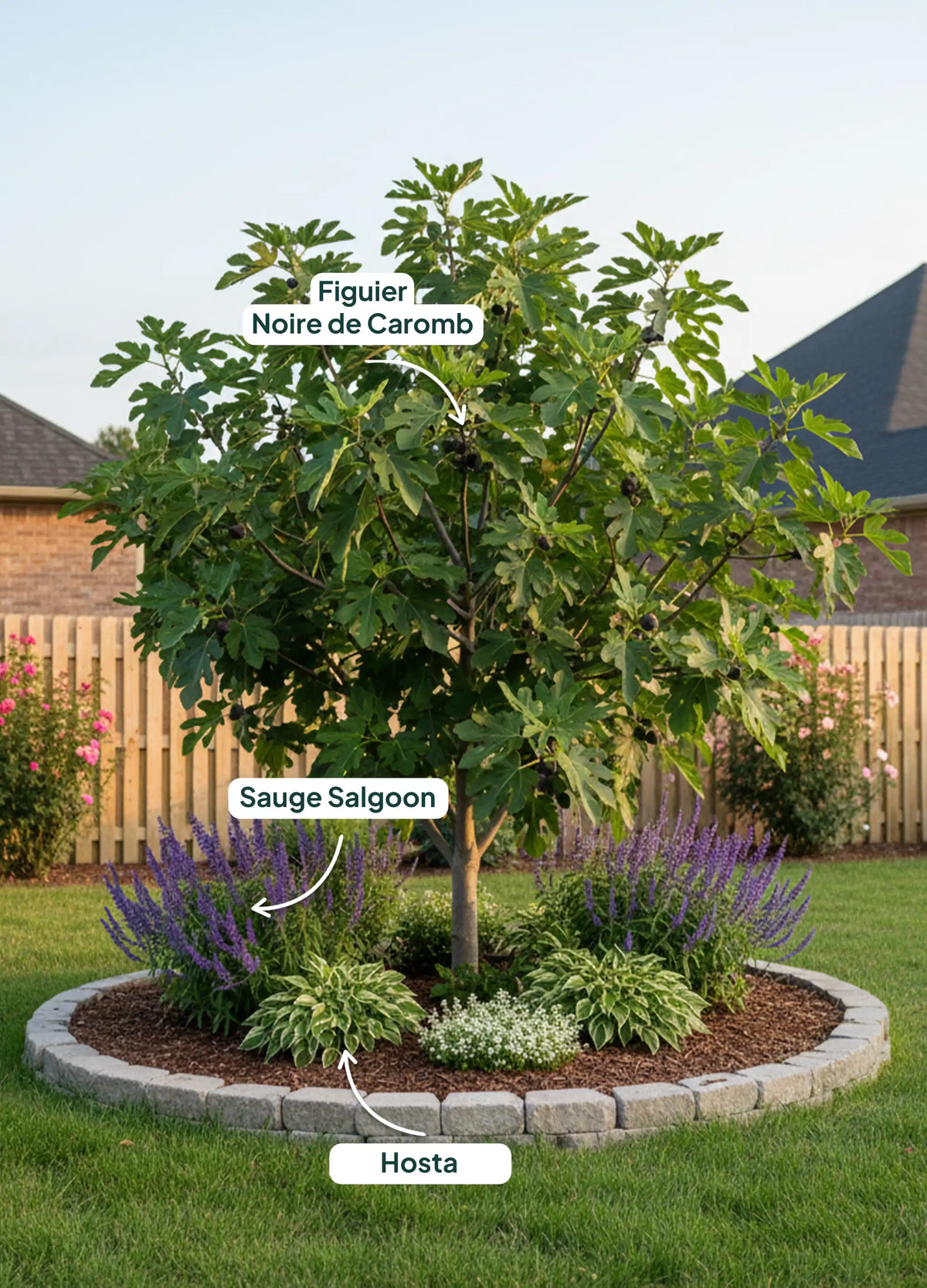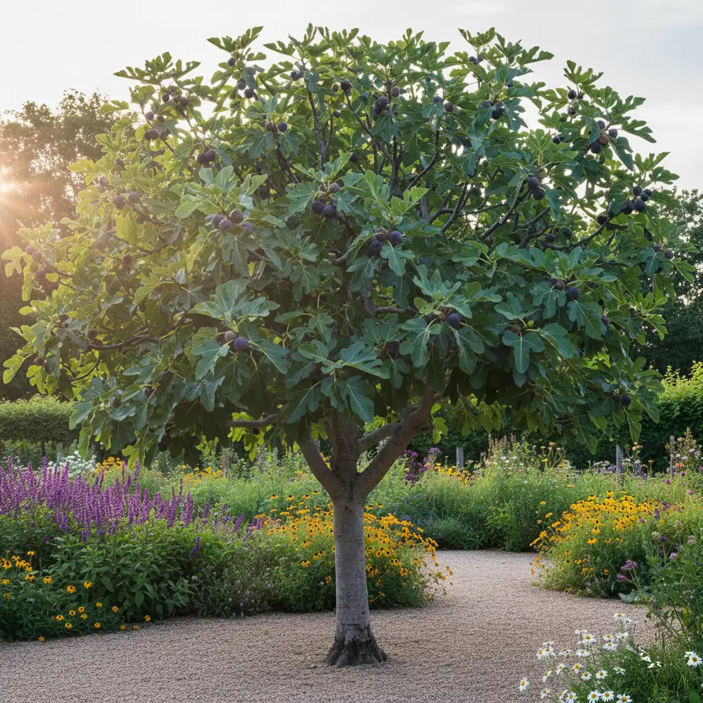 Associez-le avec des arbustes pour un jardin fruitier harmonieux :Le Figuier Noir de Caromb est un arbre fruitier méditerranéen bien adapté aux climats chauds et secs. Voici quelques recommandations pour créer un jardin harmonieux autour de votre figuier :
