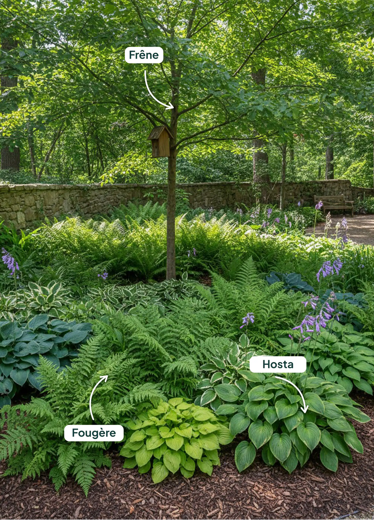 - Arbres compagnons : Chênes, érables ou tilleuls forment de beaux ensembles.