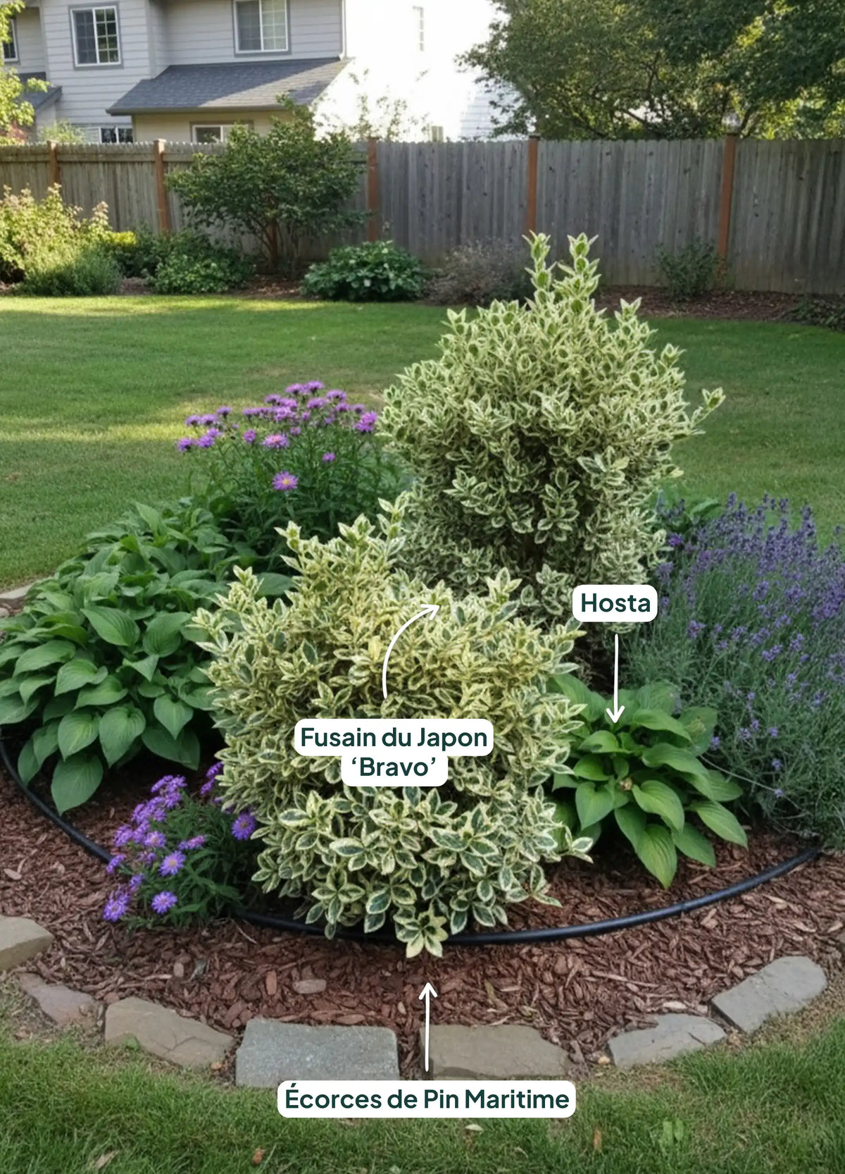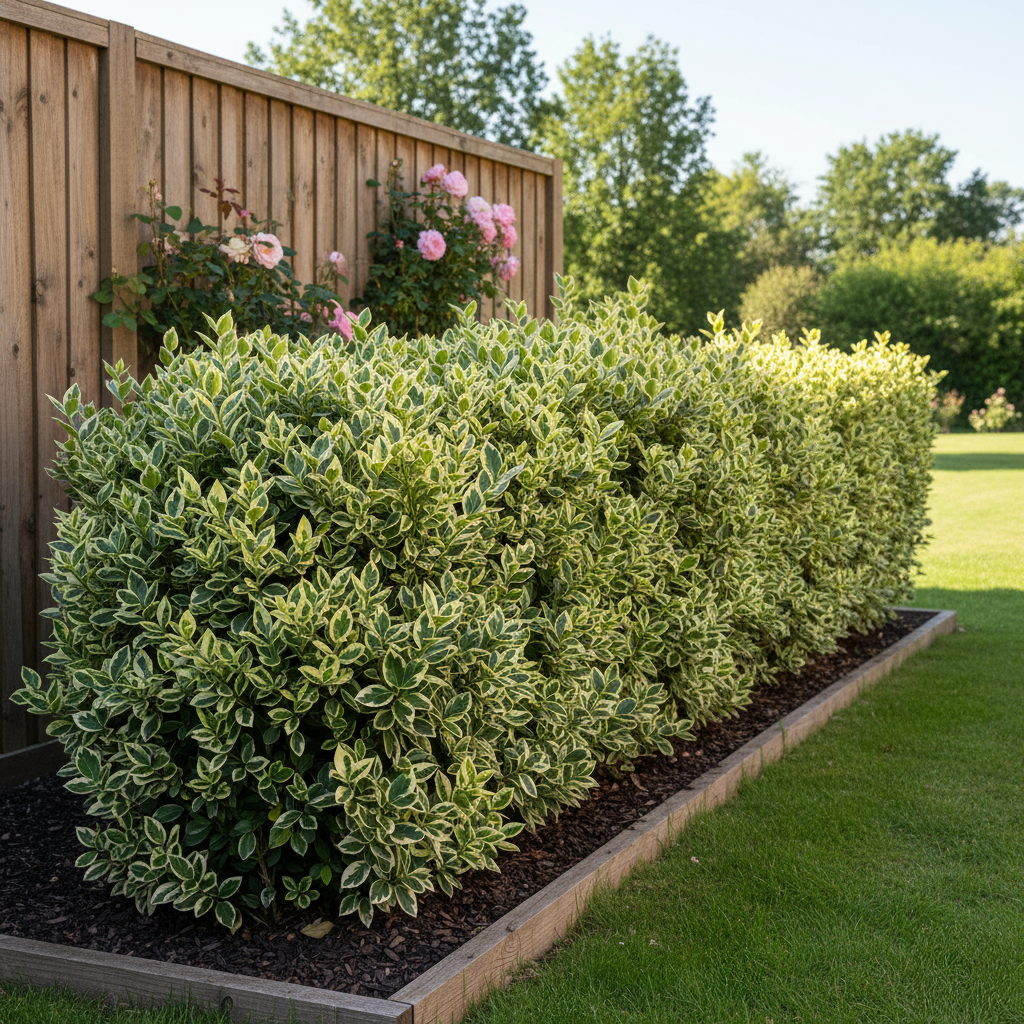 Associez-le avec des arbustes pour un jardin structuré :Le Fusain du Japon (Euonymus japonicus) est apprécié pour son feuillage persistant et sa capacité à résister aux tailles régulières. Associez-le avec d'autres arbustes pour créer des haies variées ou ajouter du volume à votre jardin :