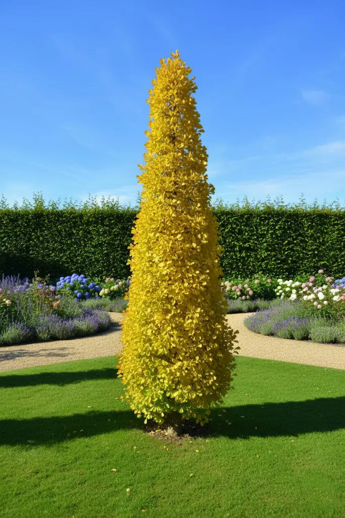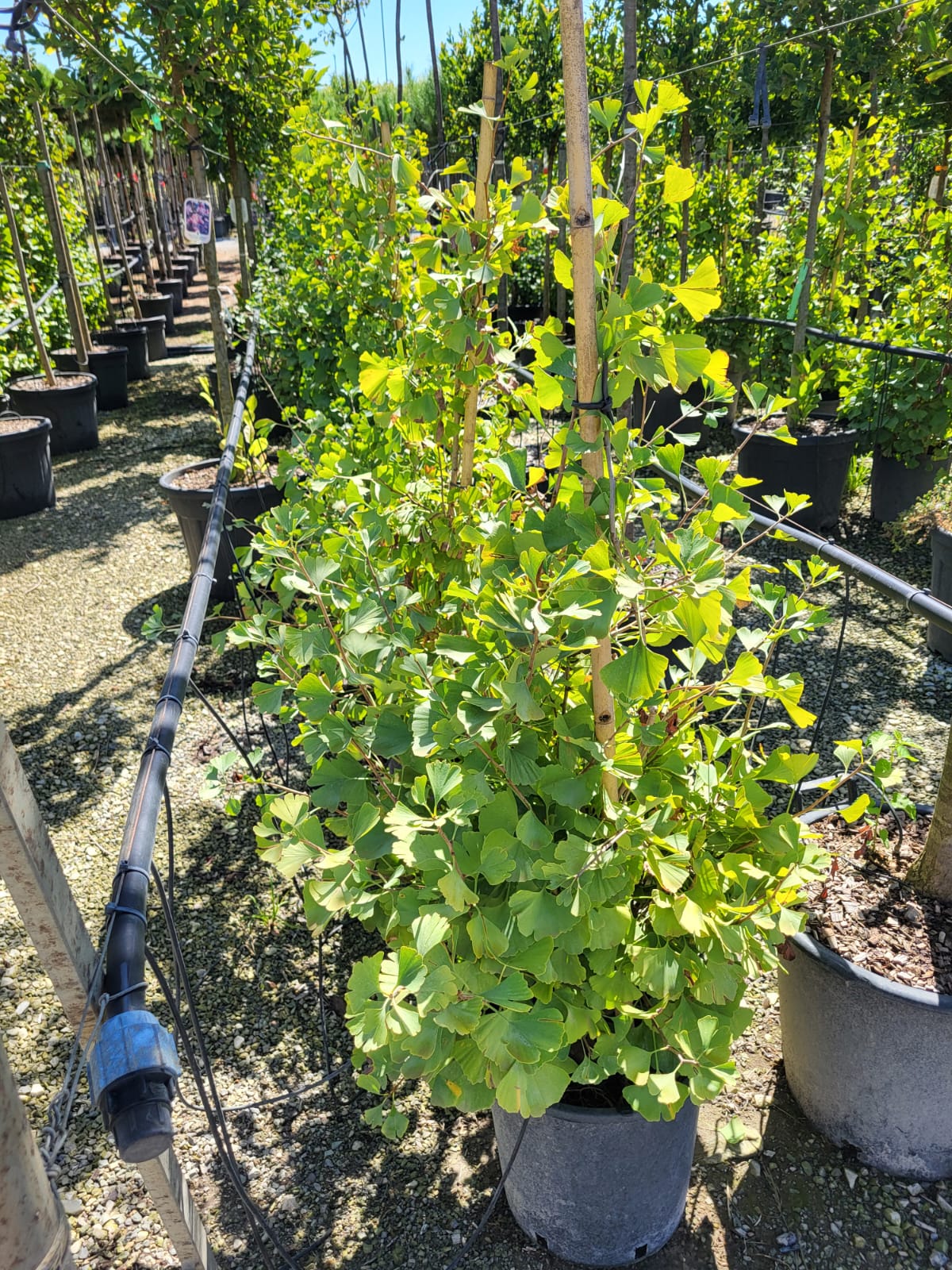 Le Ginkgo biloba ‘Fastigiata Blagon’, aussi appelé arbre aux quarante écus, appartient à la famille des Ginkgoacées. C’est une variété fastigiée du célèbre Ginkgo biloba, remarquable par sa silhouette élancée, son feuillage en éventail unique et sa résistance exceptionnelle aux conditions difficiles. Cet arbre ornemental séduit par sa présence graphique, sa longévité remarquable et ses couleurs automnales spectaculaires. Il trouve aisément sa place en alignement, en isolation ou au sein d’un jardin contemporain.