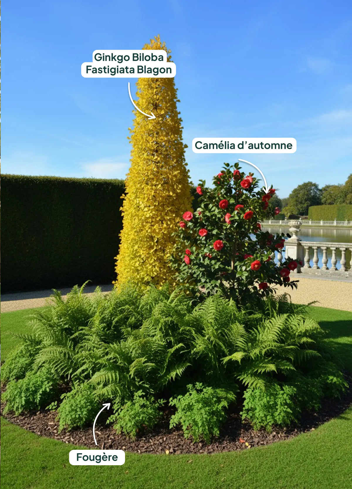 Quelles associations de plantes avec un Ginkgo biloba ‘Fastigiata Blagon’ ?