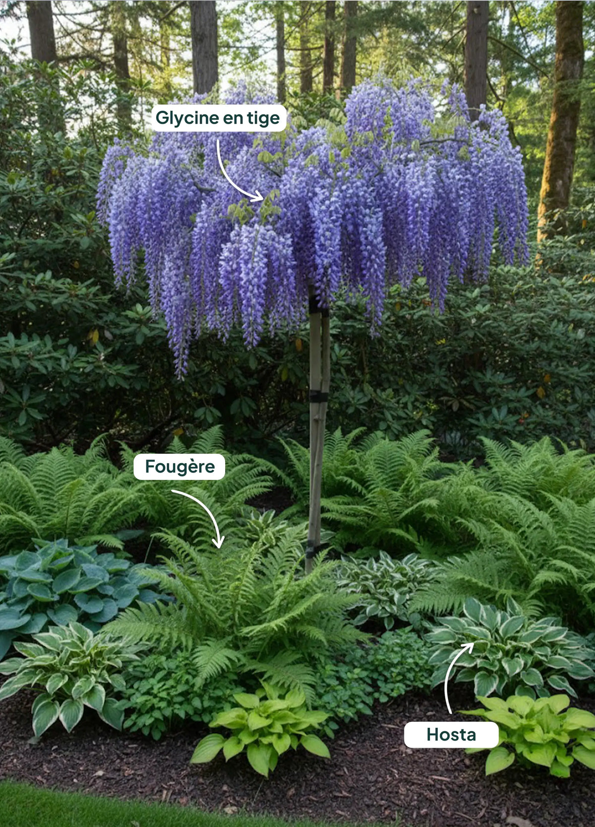 Les autres plantes à associer à la Glycine sur Tige (Wisteria floribunda)