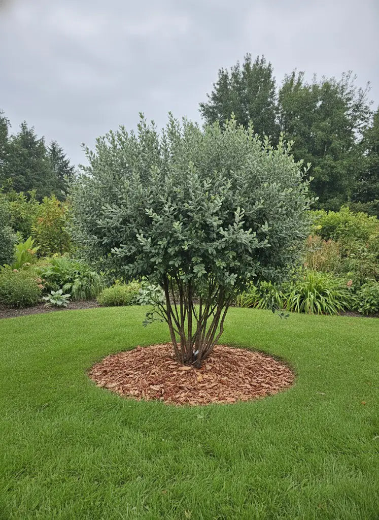 Les feuilles épaisses et ovales présentent un revers argenté très apprécié pour son rendu lumineux. Leur texture coriace garantit une excellente tenue face aux conditions climatiques sèches. On valorise son feuillage persistant, son aspect argenté, sa densité végétale, sa structure graphique et sa résistance naturelle.