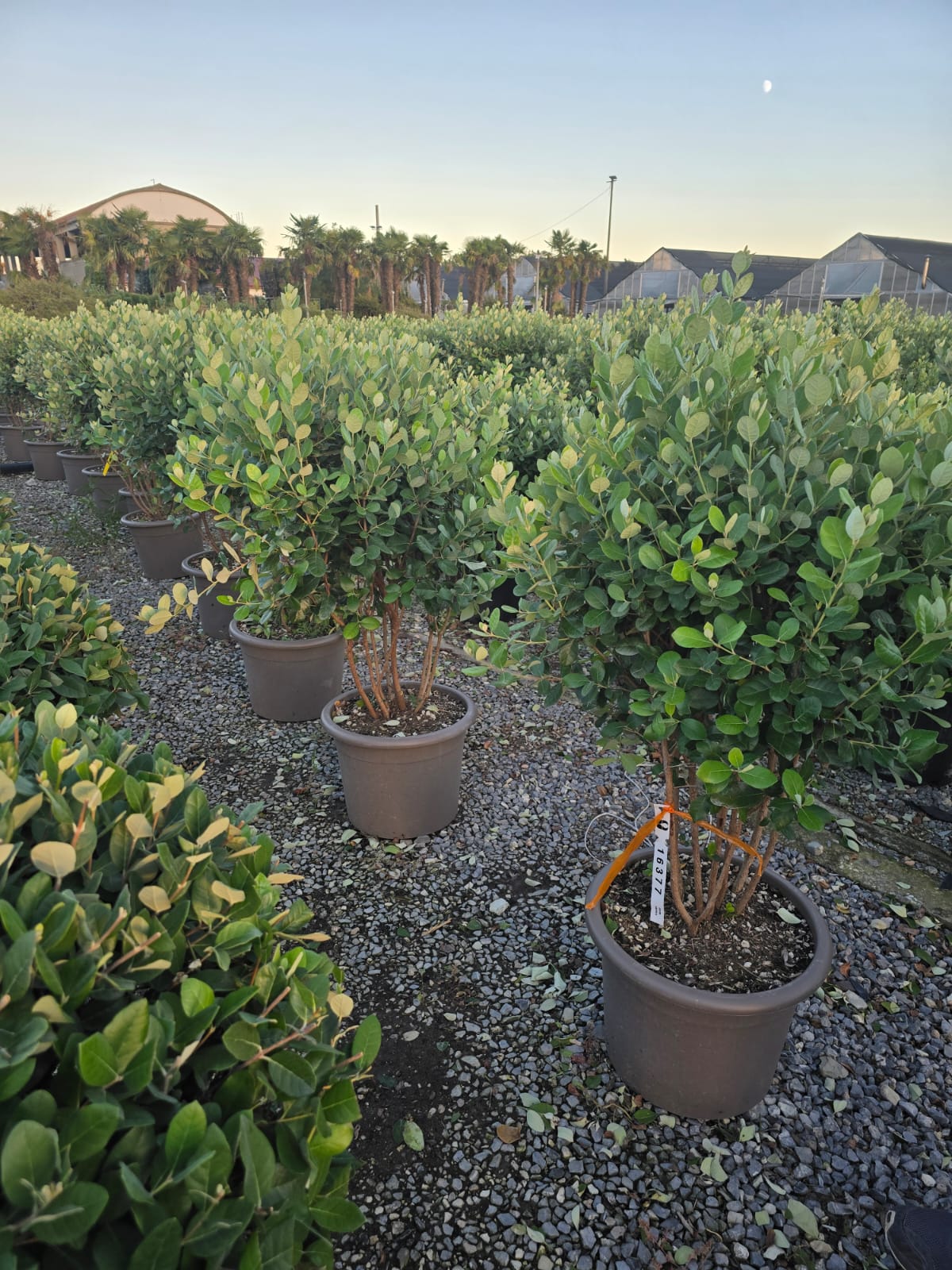 Le Goyavier du Brésil en cépée remontée, appartenant au genre Feijoa et à la famille des Myrtaceae, séduit par sa floraison décorative, son port structuré, son feuillage persistant, ses fruits comestibles et son aspect exotique. Cet arbuste fruitier offre une silhouette élégante et une présence remarquable dans les jardins contemporains ou méditerranéens. Sa culture demande une exposition ensoleillée, un sol drainé, un entretien modéré, une taille légère et un arrosage maîtrisé pour révéler tout son potentiel.