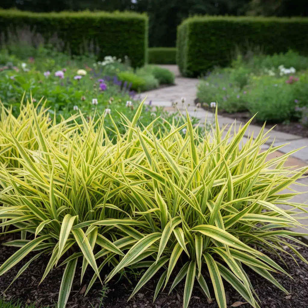 Cette espèce appartient à la famille des Acoraceae et se caractérise par ses feuilles étroites, d'un vert vif, qui se parent souvent de bandes jaunes ou blanches. Ces marquages panachés ajoutent de la luminosité et de la texture aux plantations, rendant le Jonc japonais panaché idéal pour orner les bordures de jardin, les bassins ou les jardins aquatiques. Sa taille varie généralement entre 30 et 50 cm, lui permettant de se glisser harmonieusement entre d'autres plantes.