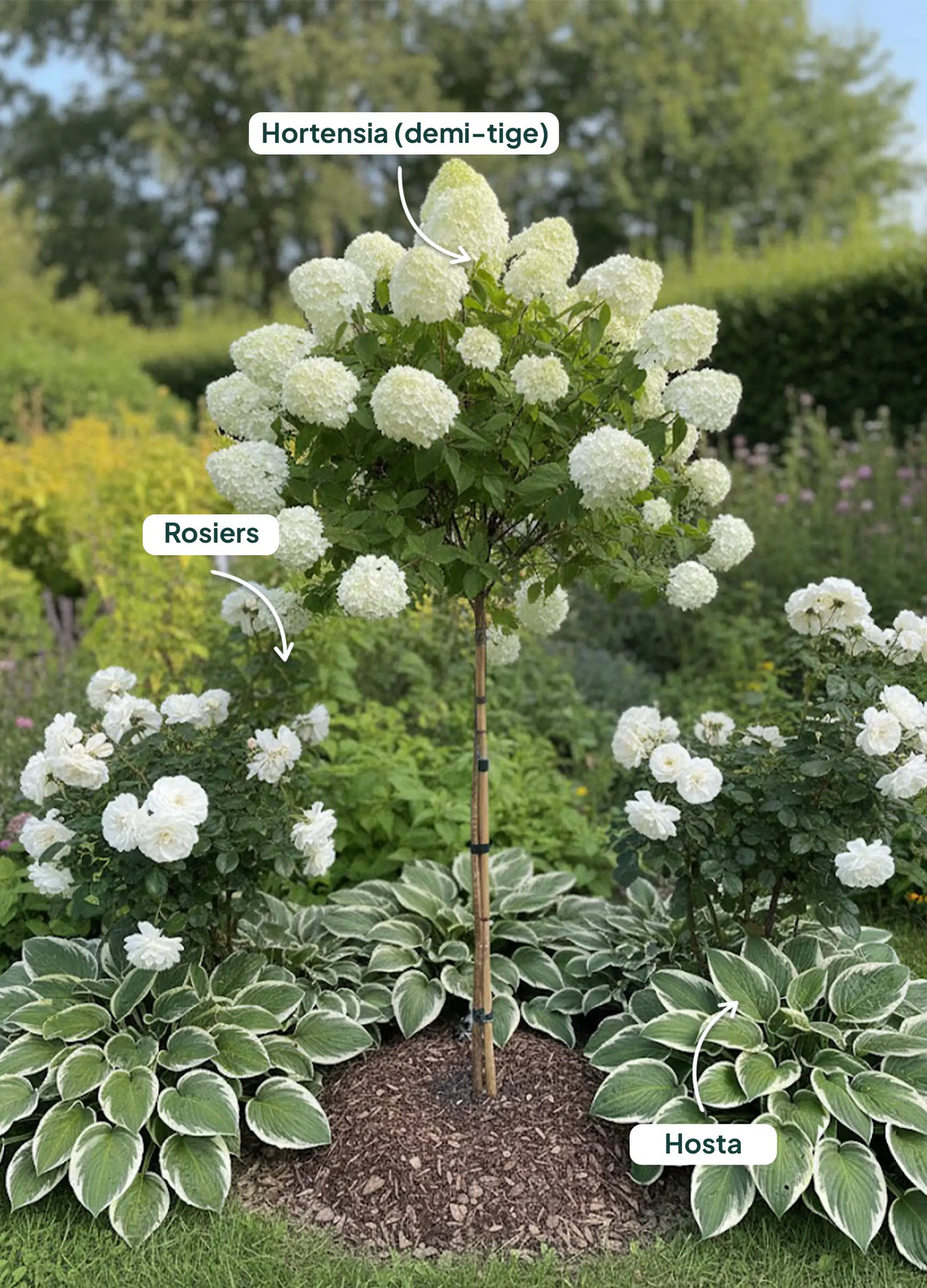 Port architectural, floraison généreuse, impact visuel, parfait pour allée ou entrée.