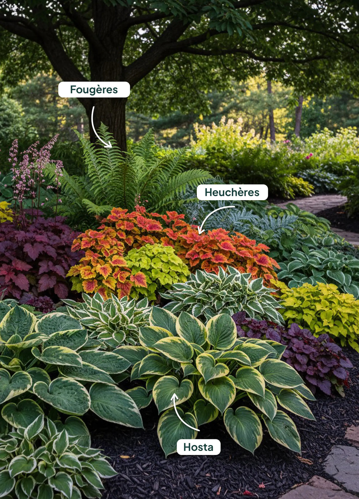 Associez-les avec des plantes vivaces pour un sous-bois luxuriant :
