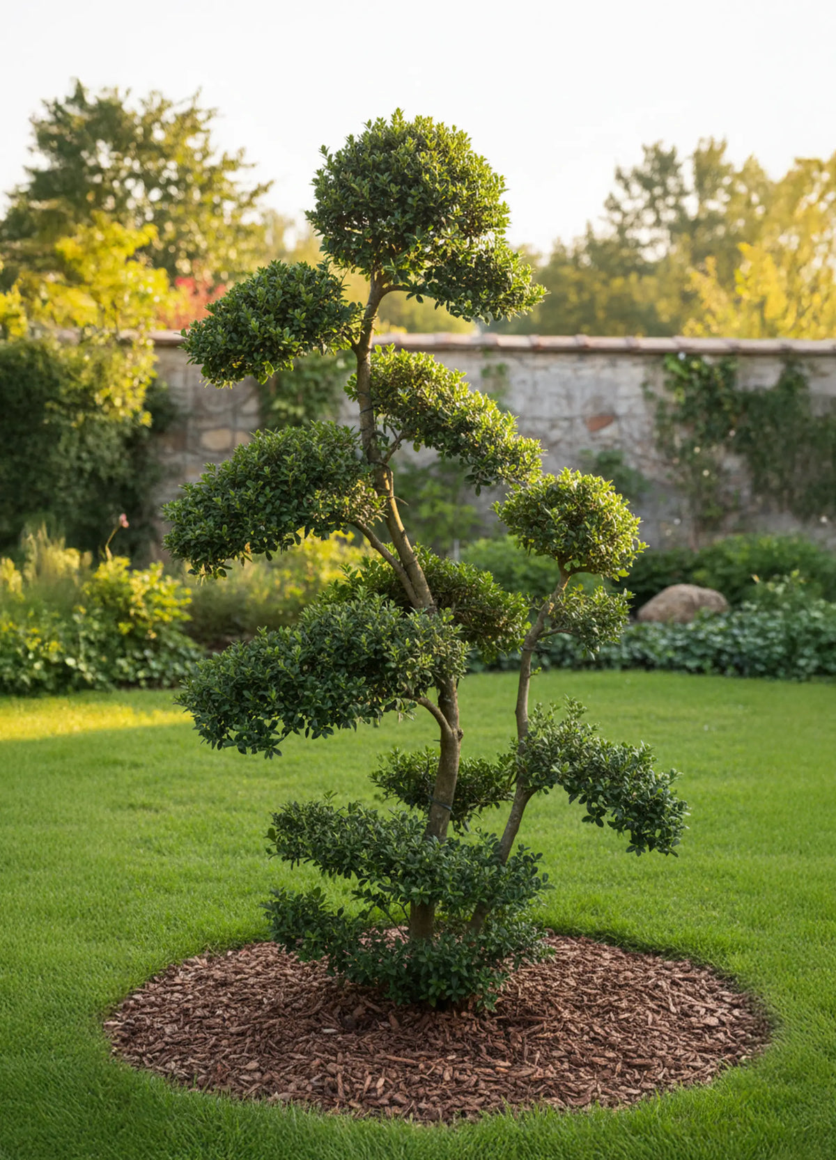 Plantez-le au printemps ou en automne pour optimiser la reprise. L’Ilex apprécie les sols acides et bien drainés, avec une humidité régulière. La taille, essentielle pour son port Niwaki, doit se faire plusieurs fois par an pour maintenir une silhouette harmonieuse.