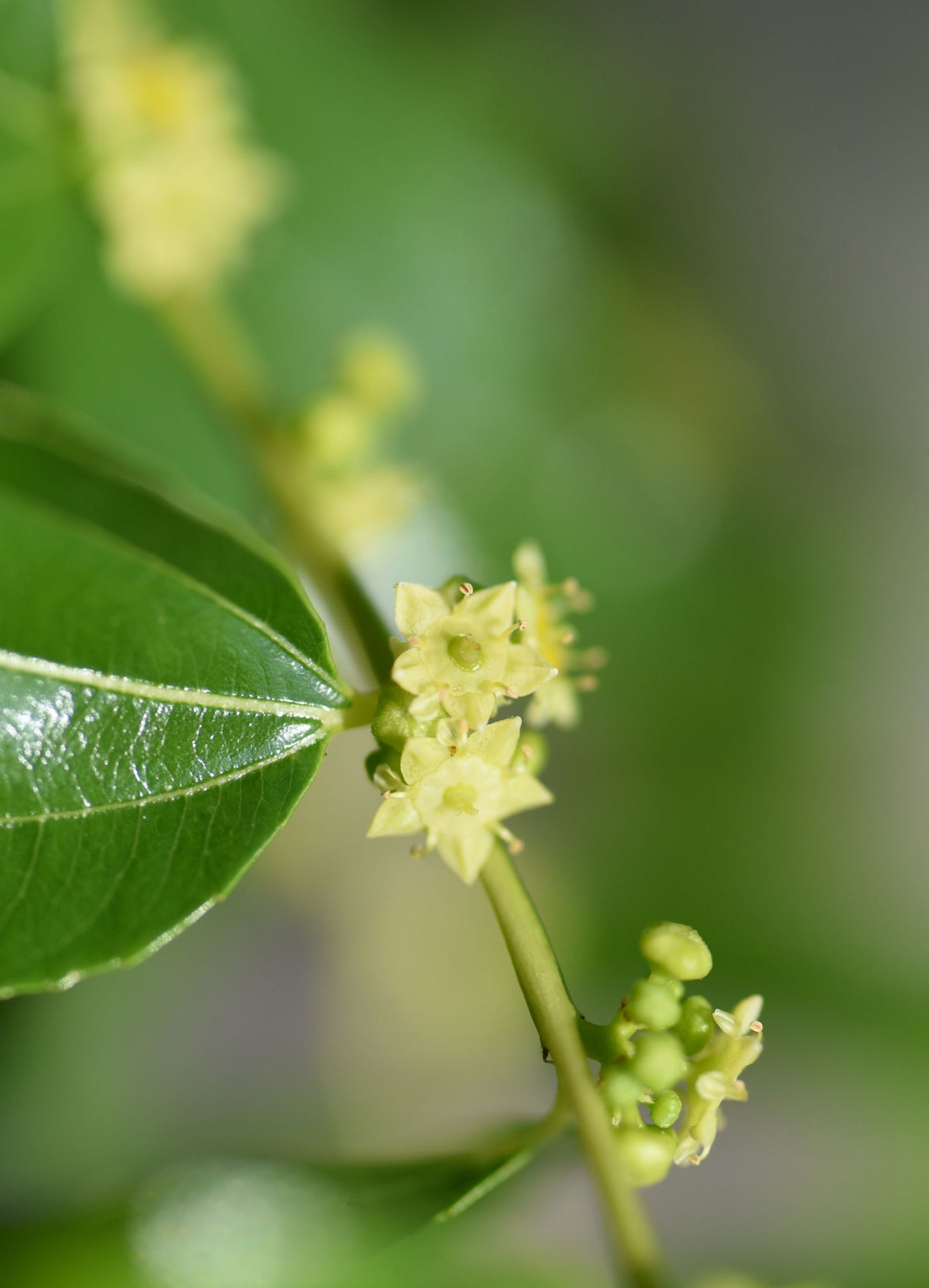 Au début de l’été, apparaissent de nombreuses petites fleurs étoilées, jaune verdâtre, discrètes mais très mellifères. Leur floraison progressive favorise une pollinisation efficace et attire une grande variété d’insectes utiles, même en climat sec.