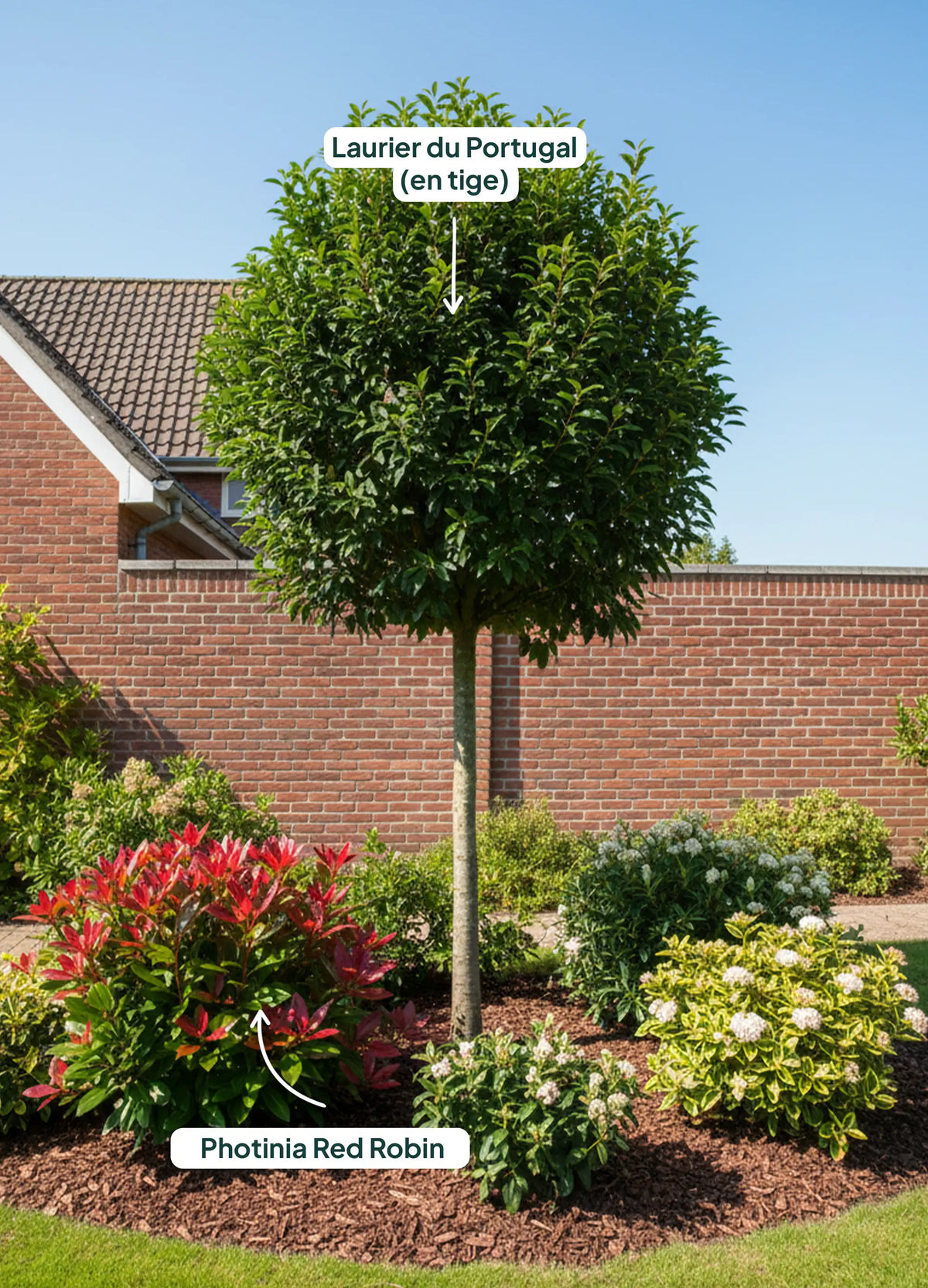 Associez-le avec des arbustes pour des haies élégantes :Le Laurier du Portugal est reconnu pour son feuillage persistant et foncé. Idéal pour des haies raffinées, il se marie bien avec d'autres arbustes qui ajoutent des nuances et des textures à l'ensemble :