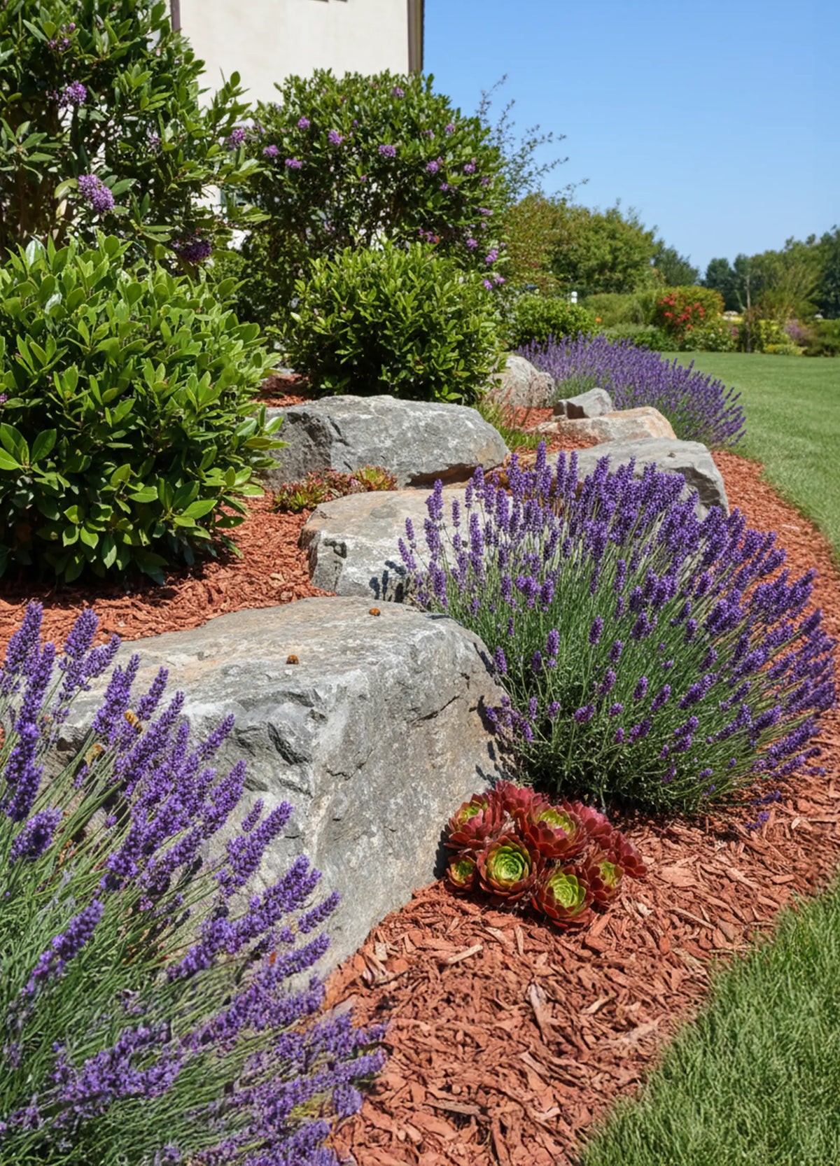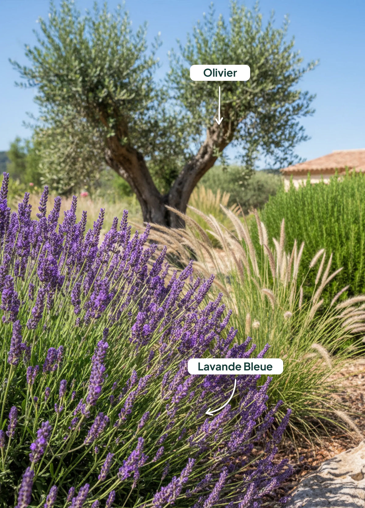 Pour un jardin au style naturel et apaisant, mariez la Lavande bleue avec des plantes vivaces complémentaires :