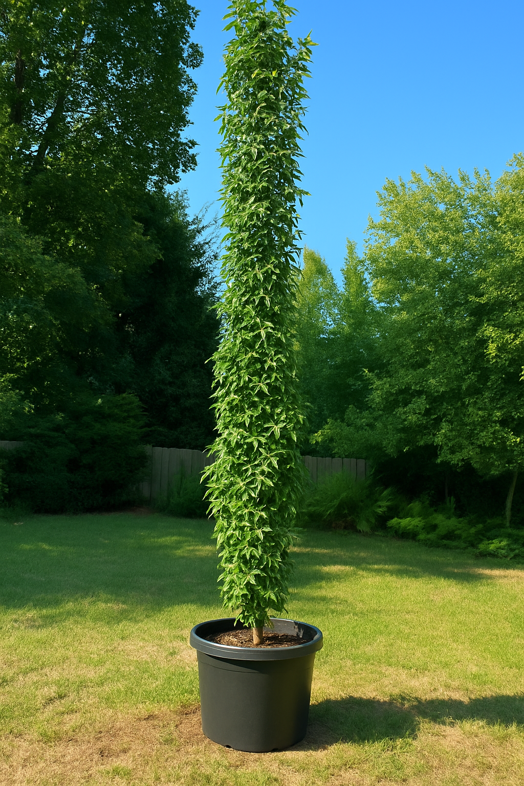 Le Liquidambar ‘Slender Silhouette’, variété remarquable de l’espèce Liquidambar styraciflua, séduit par son port fastigié très étroit, idéal pour les jardins urbains ou les espaces restreints. Cet arbre caduc se distingue par son feuillage spectaculaire, vert brillant en été, puis flamboyant en automne, offrant un intérêt décoratif unique. Sa croissance verticale et régulière permet une intégration élégante dans tout aménagement paysager.