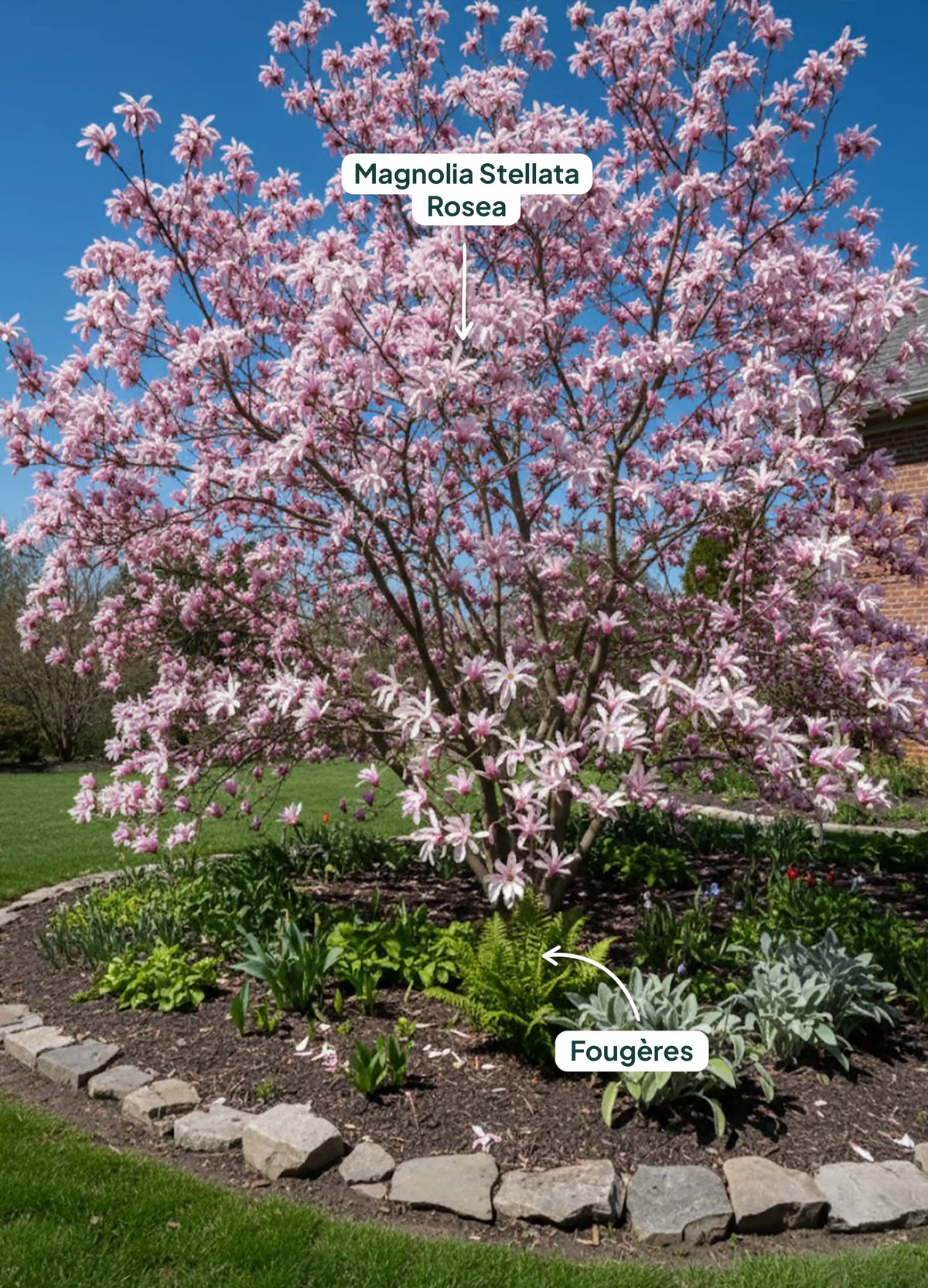 Quelles associations de plantes avec un Magnolia Stellata Rosea ?
