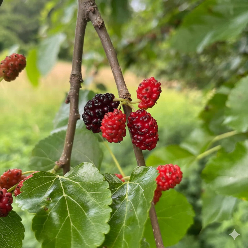 Les mûres blanches sont sucrées et juteuses, à maturité ivoire à ambrée, consommées fraîches, en confitures ou séchées. Riches en vitamines et antioxydants, elles constituent une récolte estivale familiale, gourmande et saine.
