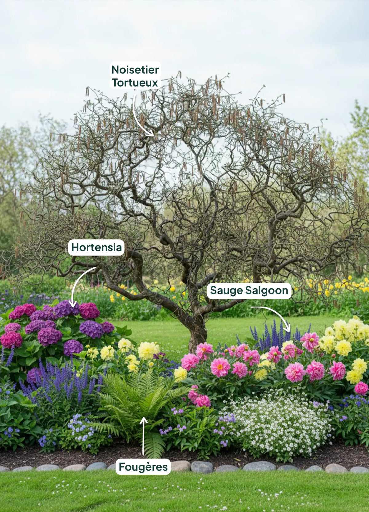 Quelles associations de plantes avec un Noisetier Tortueux ?