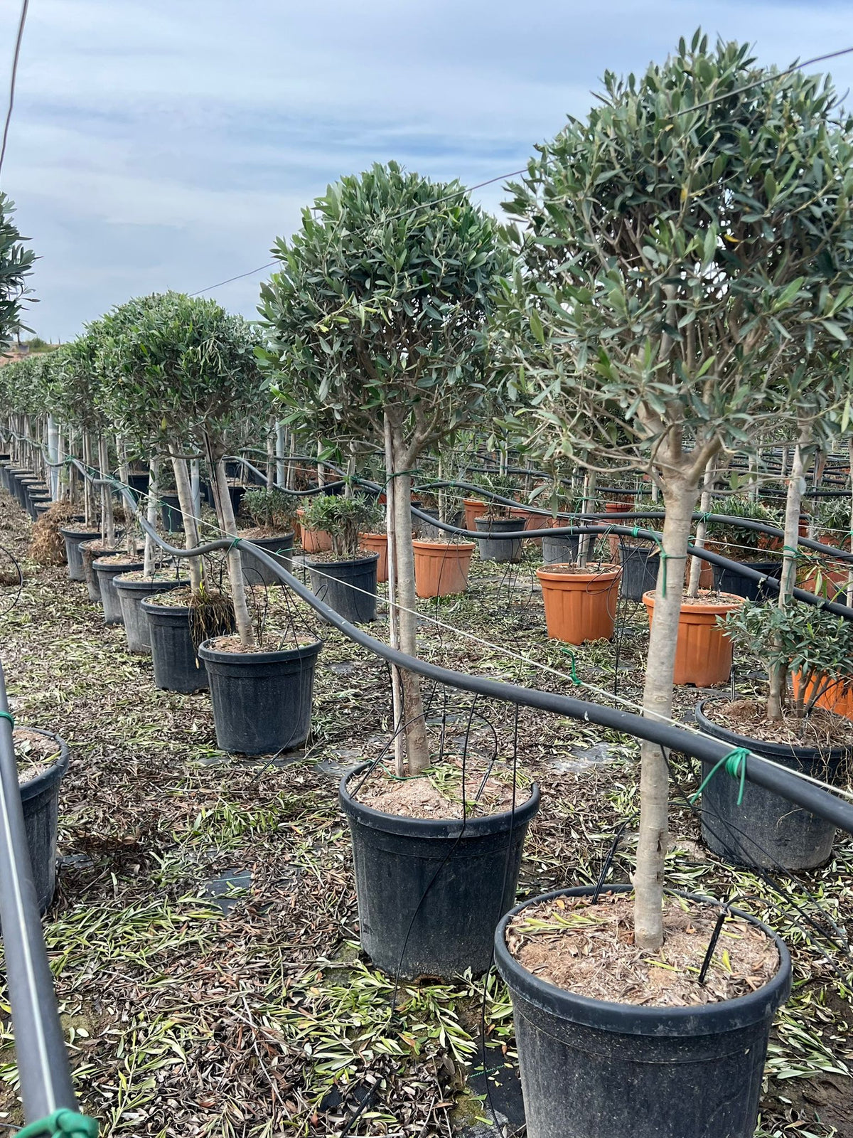 L'arrosage de l'Olivier Nuage en Boule doit être adapté selon la saison et l'âge de la plante. En été, assurez-vous de maintenir un sol légèrement humide, en arrosant profondément mais permettant au sol de sécher entre les arrosages pour éviter l'excès d'eau. En hiver, réduisez l'arrosage, car l'arbre entre dans une période de repos. Pour un jeune olivier récemment planté, veillez à un arrosage plus régulier jusqu'à l'établissement de ses racines.