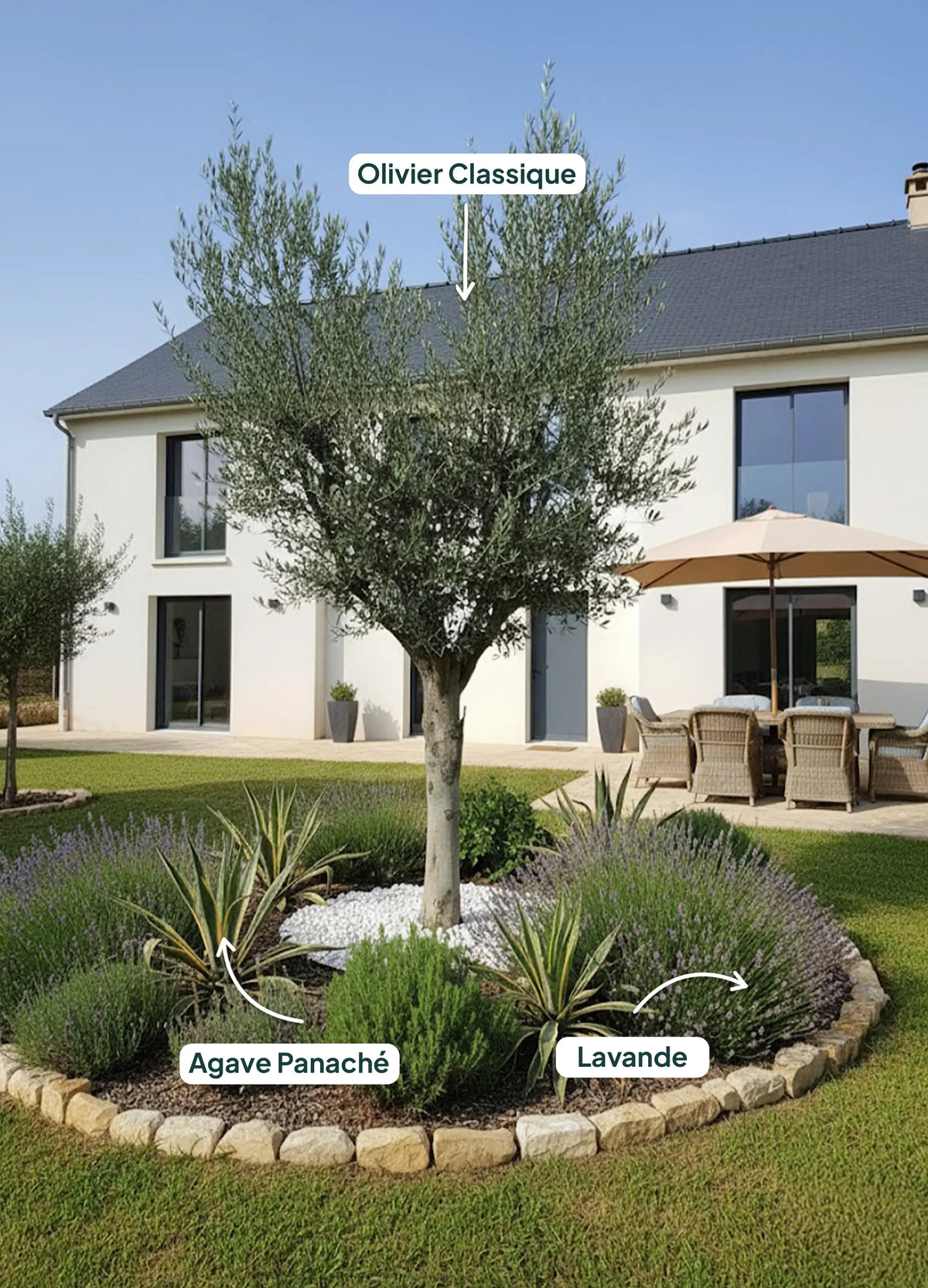Associez-le avec des arbustes pour une harmonie méditerranéenne :L'Olivier s'épanouit sous le soleil et le climat sec, typiques des paysages méditerranéens. Intégrez-le à un jardin méditerranéen en l'associant à des arbustes adaptés au même environnement :