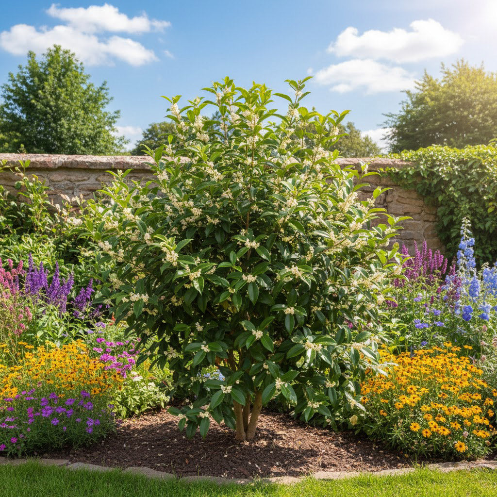Associez-le avec des arbustes pour un jardin parfumé :L’Osmanthe parfumé (Osmanthus fragrans) est reconnu pour son intense parfum floral. Pour maximiser ses agréables senteurs, associez-le avec des arbustes aromatiques qui créent une symphonie olfactive dans votre jardin :