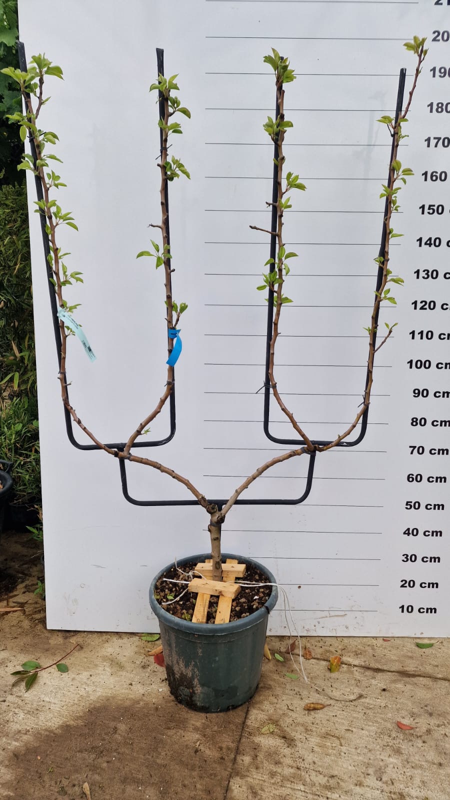 Effectuez une taille de structure en hiver pour former la palmette et une taille en vert l’été pour maintenir l’équilibre et favoriser la fructification.