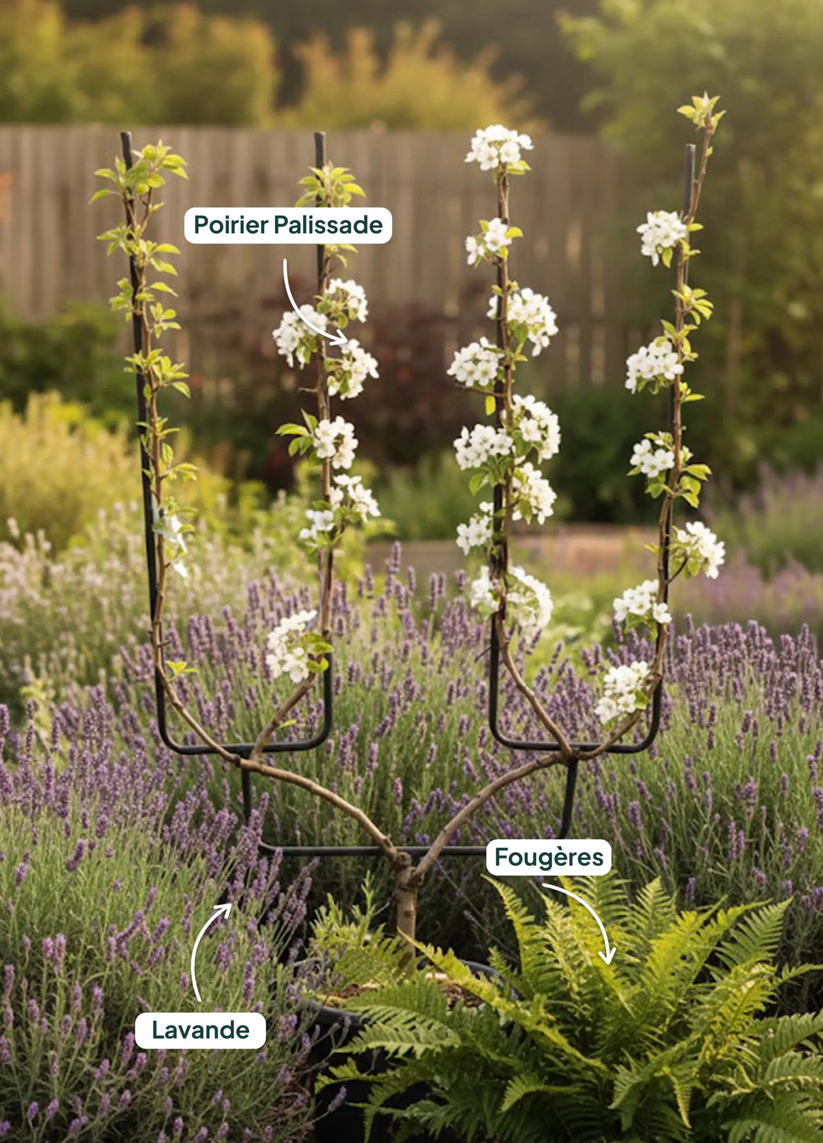 Quelles associations de plantes avec un Palissade Poirier ‘Doyenné du Comice’