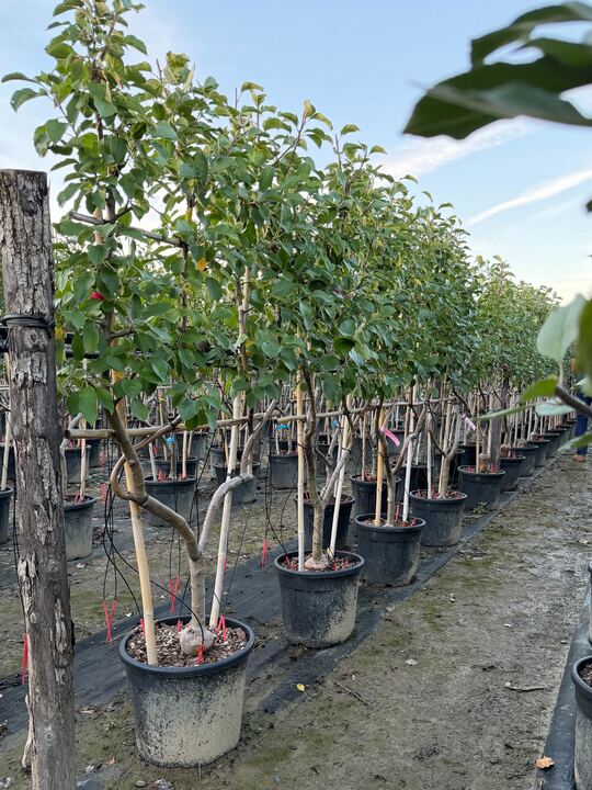Le pommier palissé ‘Reine des Reinettes’ est une variété ancienne de Malus domestica, très appréciée pour ses fruits parfumés, sa floraison abondante et sa culture adaptée aux petits espaces. Idéal en verger mural, il combine esthétique, productivité et facilité d’entretien, même dans les jardins urbains.