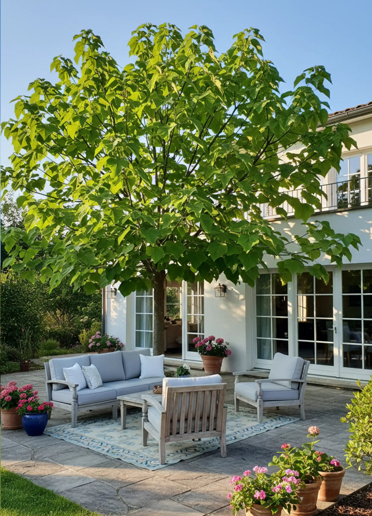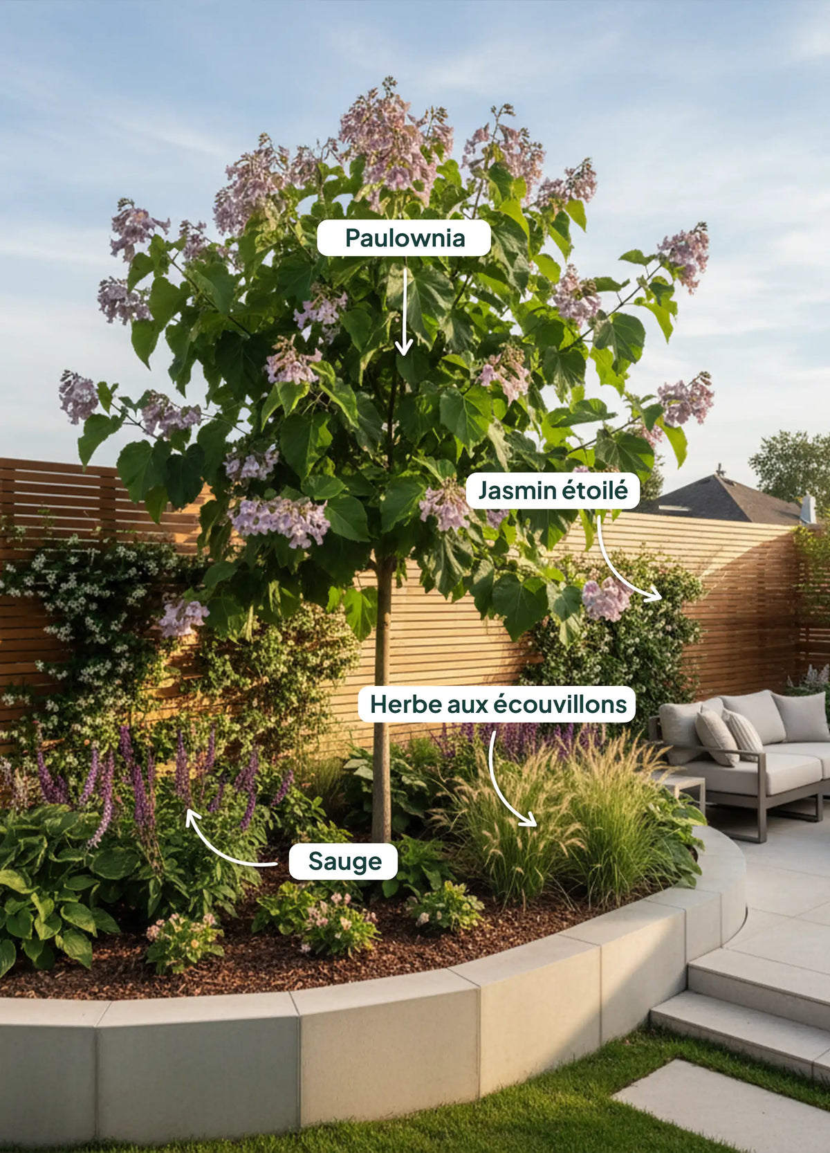 Associez-le avec des arbres et arbustes pour un jardin impressionnant :L'Arbre impérial, connu pour sa croissance rapide et ses impressionnantes fleurs lavande au printemps, est idéal dans un jardin structuré. Associez-le avec d'autres arbres et arbustes pour créer un paysage grandiose et harmonieux :