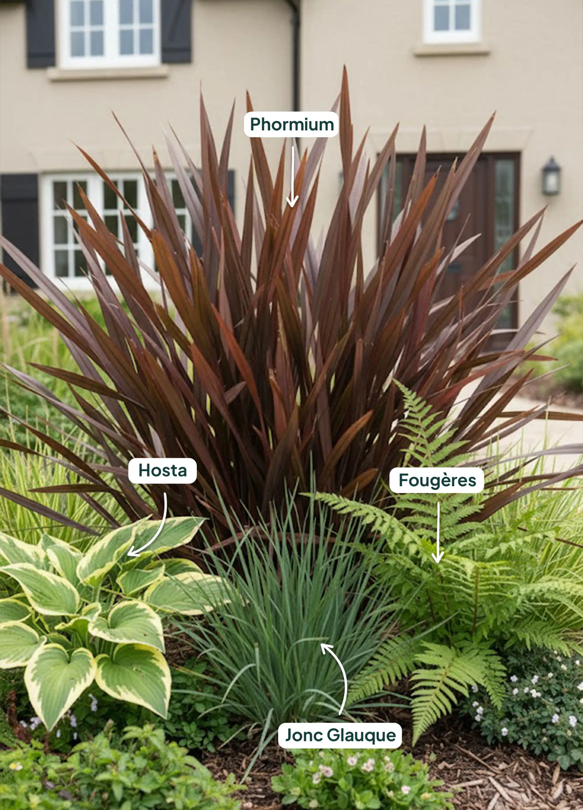 Les autres plantes à associer au Lin de Nouvelle-Zélande (Phormium tenax)