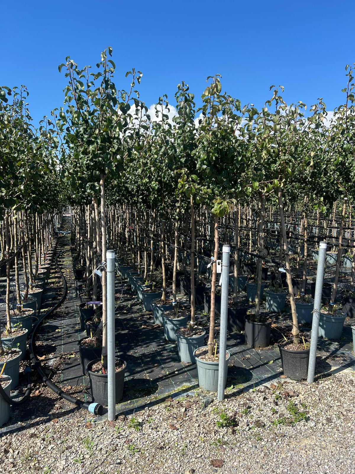 Le Poirier ‘Beurré Hardy’ (Pyrus communis), issu de la famille des Rosacées, est une variété ancienne et réputée pour la qualité exceptionnelle de ses fruits parfumés. Il produit des poires juteuses et fondantes, très appréciées pour la dégustation fraîche ou en cuisine. Rustique et vigoureux, il s’adapte bien à de nombreux types de sols et convient aussi bien aux vergers familiaux qu’aux jardins d’ornement.