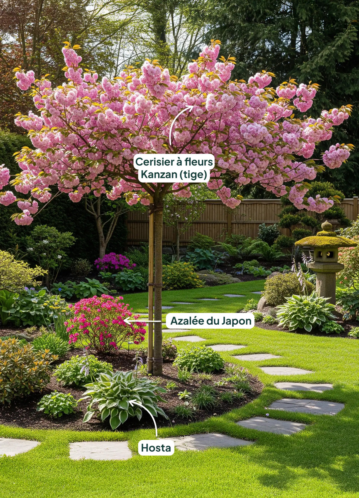 Pour embellir le pied du Cerisier Japonais, privilégiez des plantes qui apprécient l'ombre légère et qui accentuent sa beauté délicate :