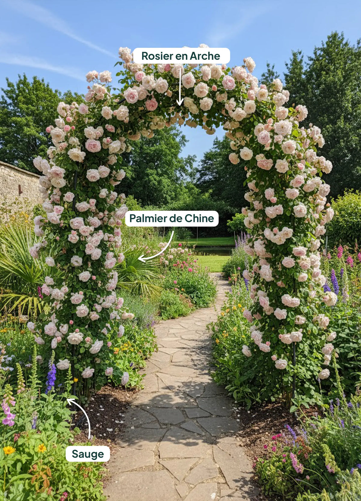 Associez-le avec des arbustes pour une haie fleurie :Le Rosier en Palissade est prisé pour ses fleurs magnifiques et son parfum envoûtant. Les associer avec d’autres arbustes crée une haie attrayante pour l’œil et bénéfique pour la biodiversité :