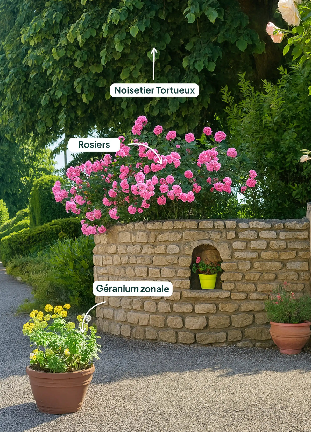 Associez-le avec des arbustes pour un jardin plein de charme :Le Rosier Touffe embellit n'importe quel jardin avec ses fleurs colorées et son parfum envoûtant. Associez-le à des arbustes qui ajoutent du volume et une diversité visuelle :